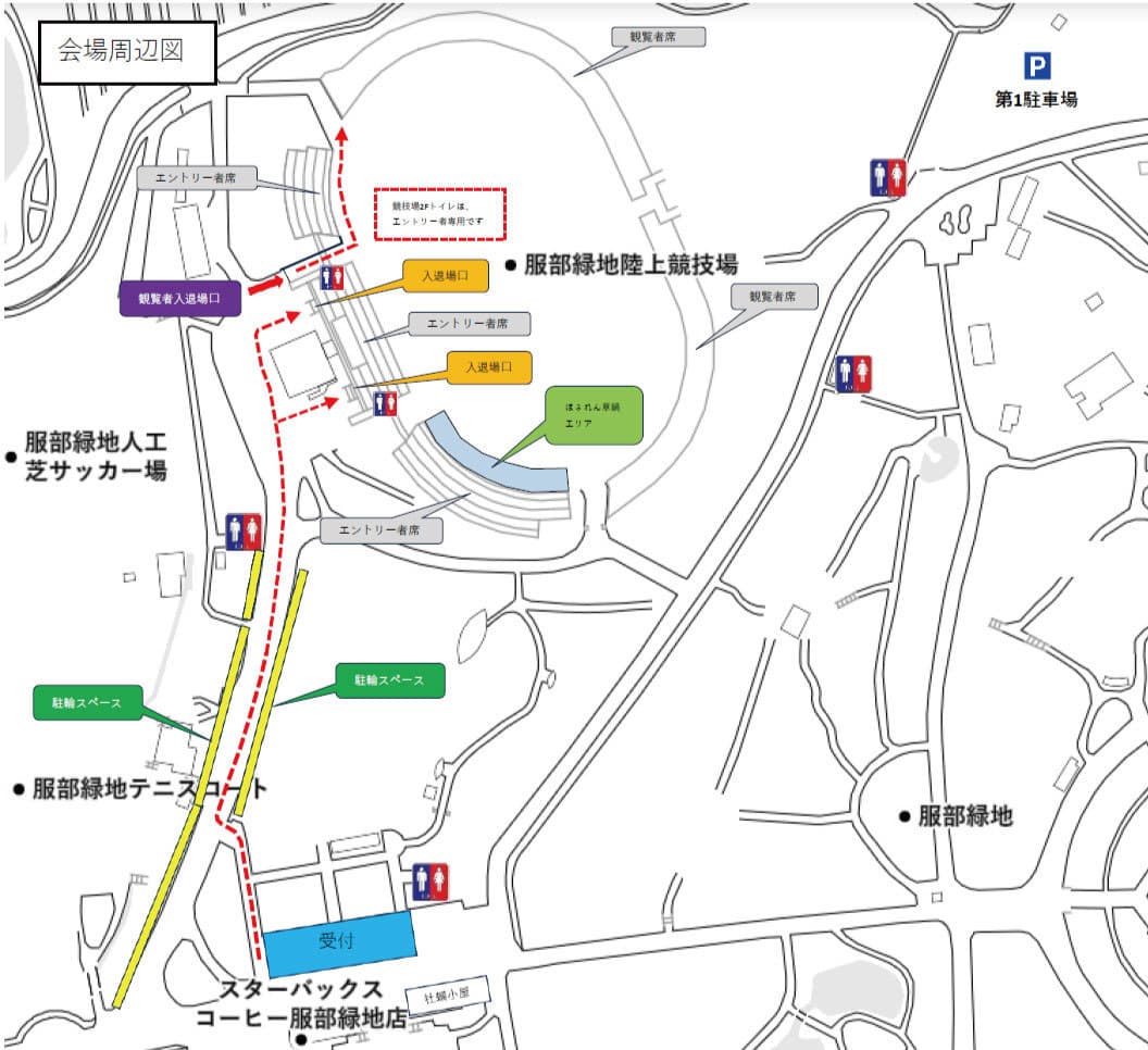 参加者のご家族・ご友人などによる応援は、陸上競技場内の指定場所にてお願いいたします。